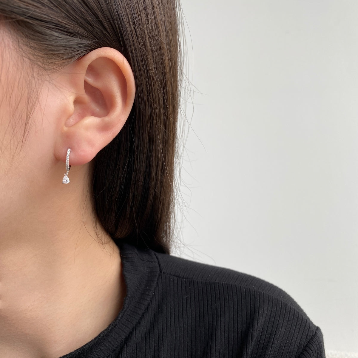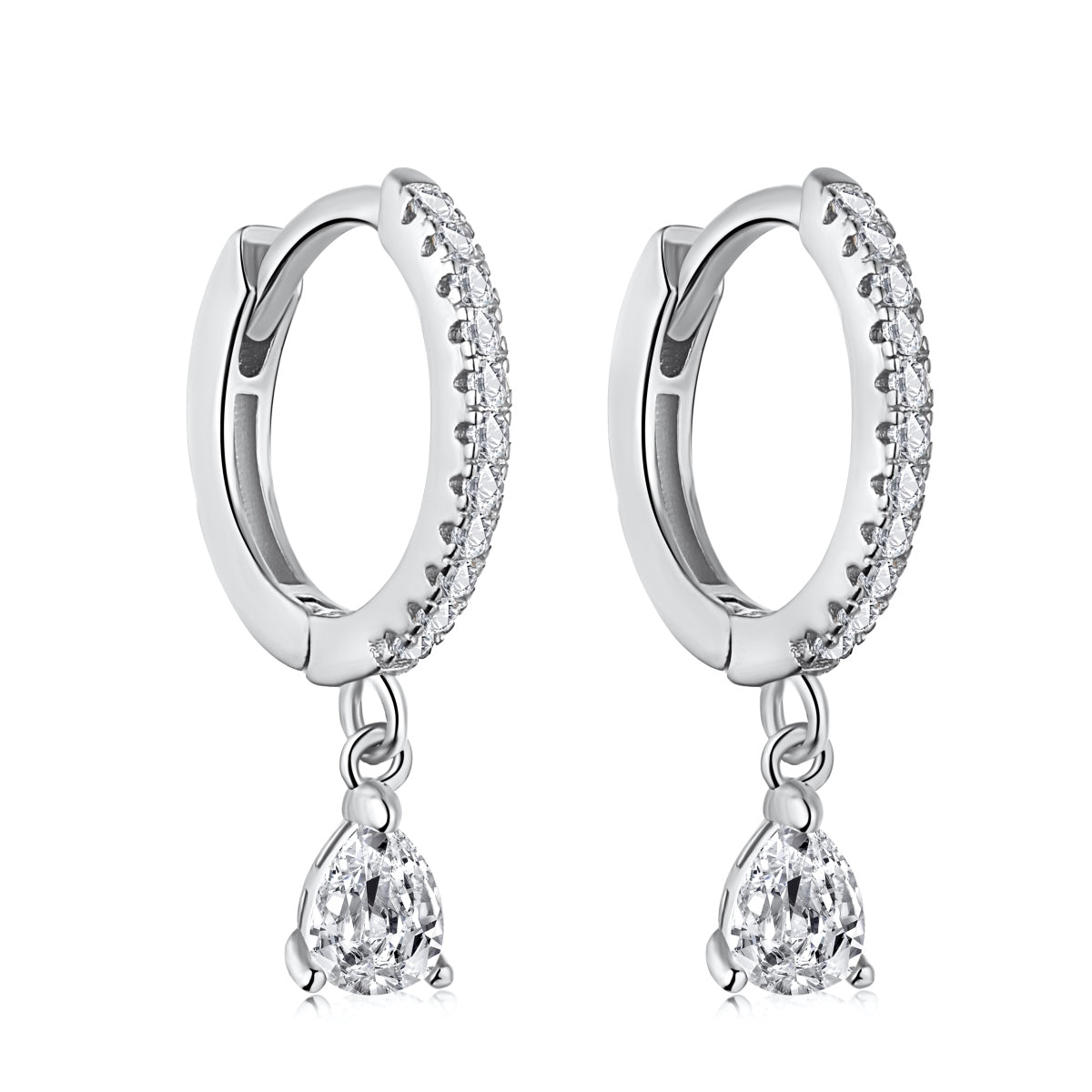 Experience the luxury of Huggies with a pear drop design! This exquisite jewelry piece is crafted with Grade 5A cubic zirconia, sterling silver, and rhodium plating for maximum shine and durability. Elevate any outfit and treat yourself or your loved ones to this elegant accessory.